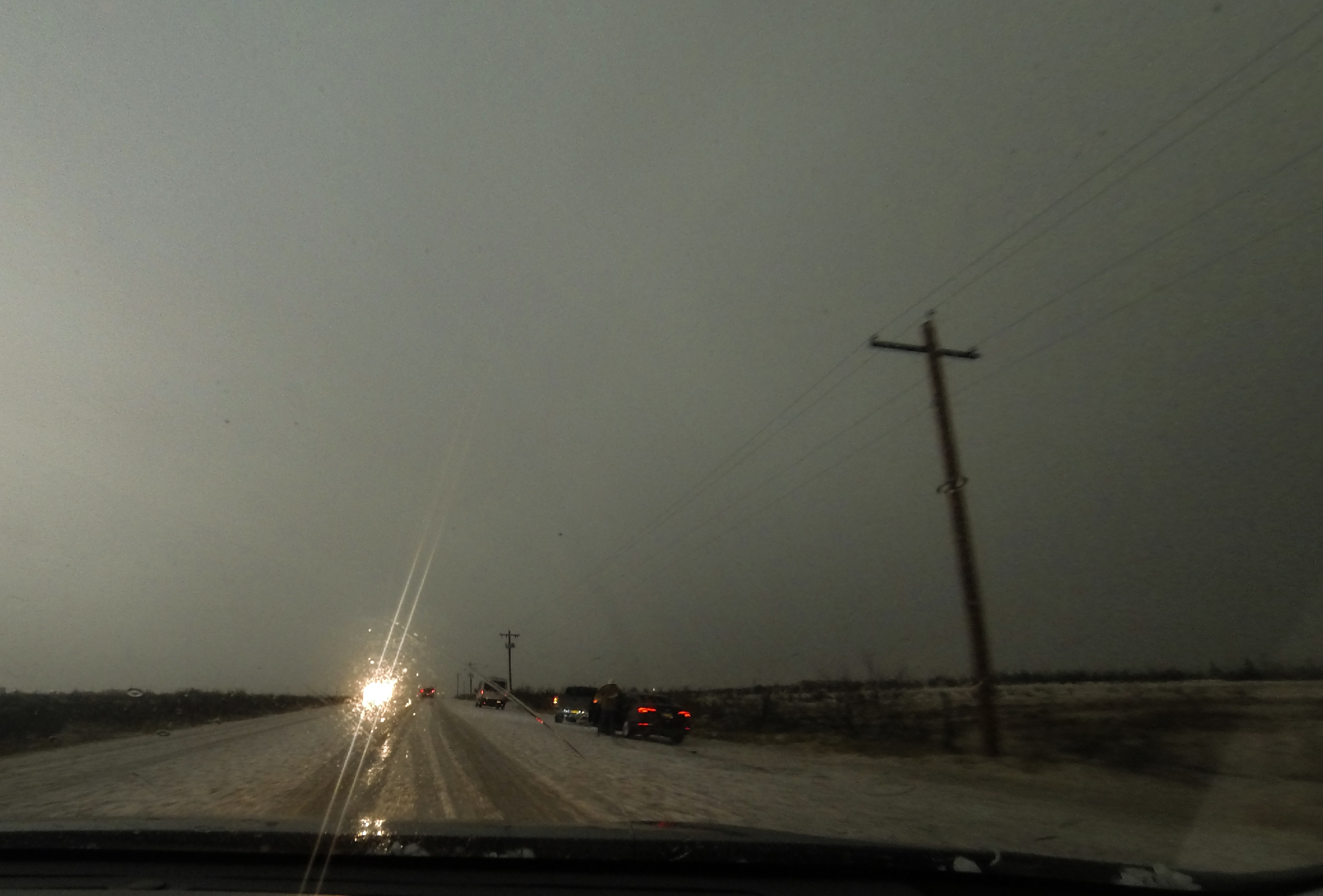 5:00 - 6:20 PM MDT: Nevertheless, we persisted south towards the next storm coming out of Texas towards Carlsbad. We looped around the SW side of town but still caught some bad rush-hour traffic -- likely a combo of locals and oil trucks. Finally, by 5:35 we made it through Carlsbad south on Hwy 285 towards Loving -- most of the fog and stratus having burned off leaving a view of an approaching dark cloud bank to our southwest.