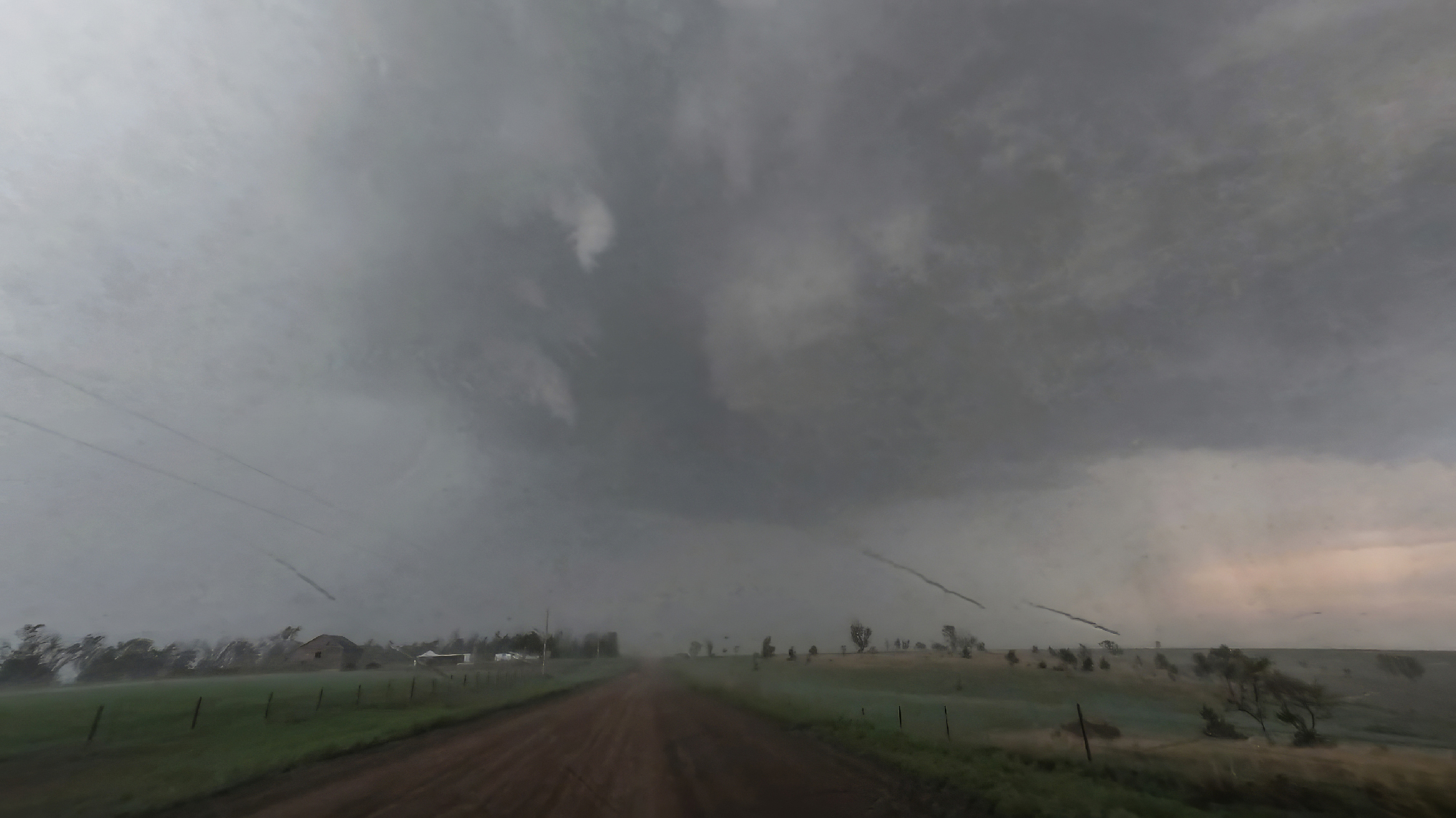 The rope continued to stretch and elongate as the parent storm outpaced the ground circulation. We passed through the damage path twice in pursuit. Fortunately, only some power poles and sheet metal were the only damage visible (we did completely miss a house tucked behind some trees that ended up taking significant damage, but the residents were ok). By 6:08 the tornado had fully roped, having traveled 6 miles over its 10-minute life (later receiving an EF2 rating for the house damage). Thanks to our early, aggressive strategy, we spent the entire duration in chase -- not a single frame shot from a static location. Nevertheless, it felt amazing to be on the board for the year, especially with one of the most dynamic and beautiful tors we've ever caught.