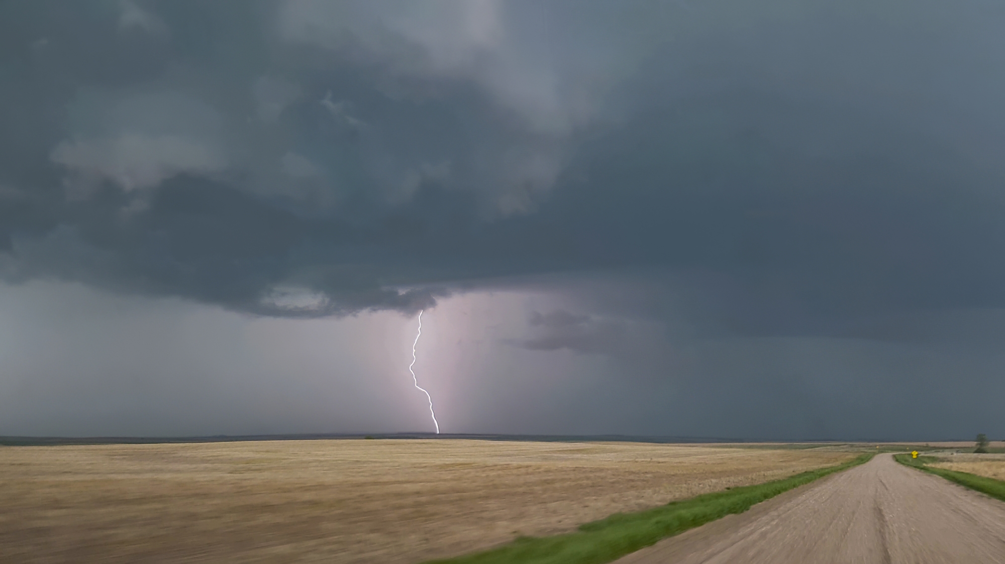 Now fully transitioned from triumphant to humbled, and now also fully behind the trailing supercell, we took a much more cautious approach to the remainder of the chase. In the remaining light, there was the possibility the we could take Hwy47 north then I80 east and use the faster highways to make up lost ground. And our planned seemed to be working as we passed just behind yet another tornado path in Cozad at 8:28. In the growing darkness, we could catch fleeting glimpses of the lowering to our northeast, but never anything definitive. Finally, as we took a grid road north of Lexington and into the Sandhills, I realized the chase was done. Once again, the Crosstrek threatened to veer off into the ditch. But this time the sandy mud caked the inner wheel wells so thickly it threatened to cut our mobility completely. And so at 9:02 PM in the deepening twilight, I enjoyed one last view of the strobing supercell escaping to the northeast. Truly this was a top tier chase.
