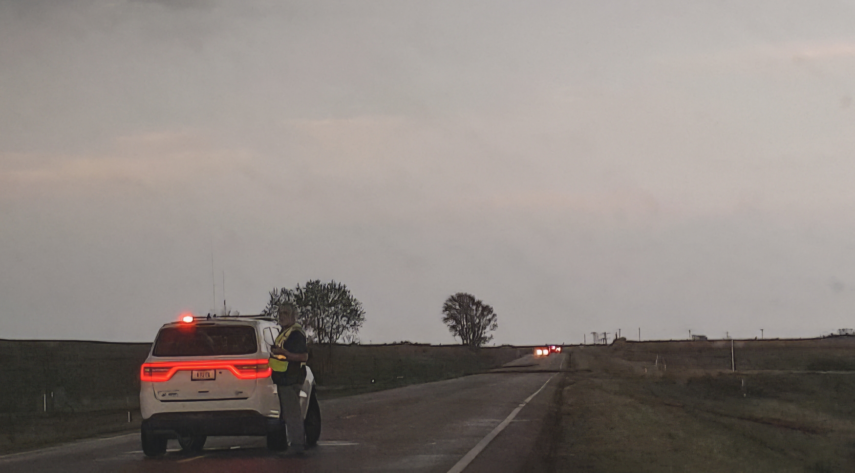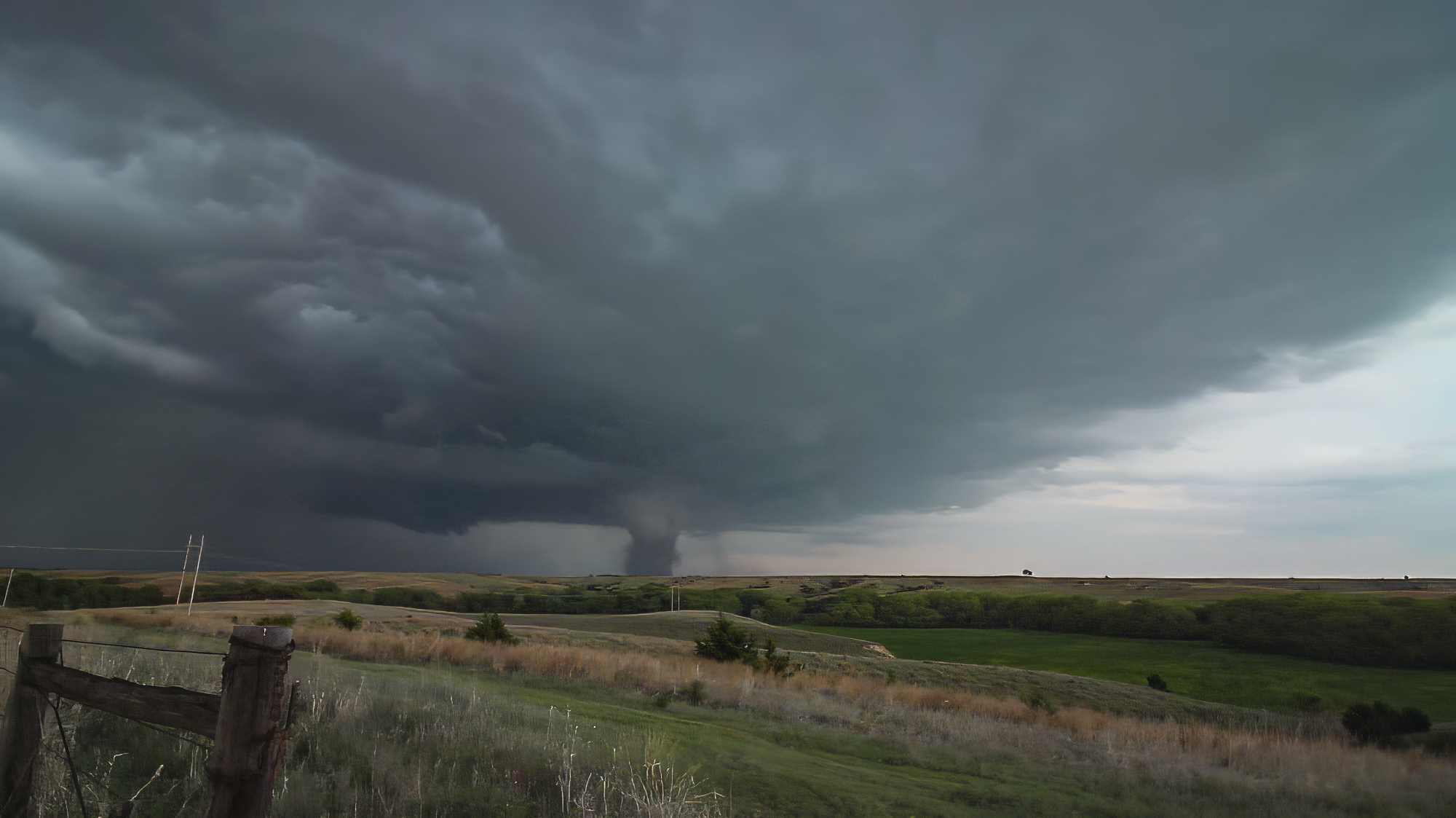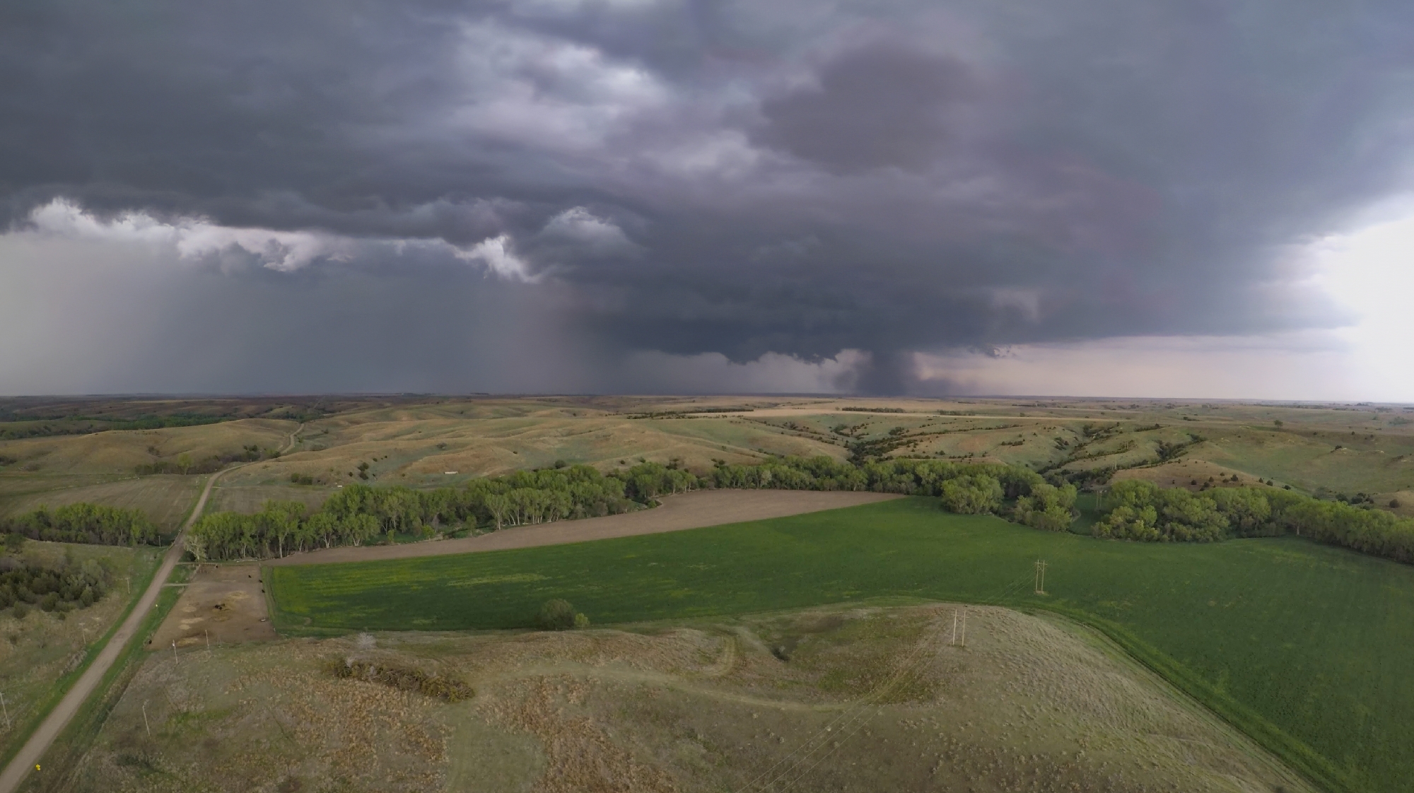 This new tornado, now officially called the Stockville EF3, dropped at exactly 7PM -- the magic hour worked its witchcraft after all. I knew we were hopelessly far behind with the road conditions, so it was an easy decision to stop and capture our first stable, tripod shots of the day -- selfies included. From our vantage about 7 miles behind the ground circulation, the dark dust created a very menacing appearance. Definitely the strongest of today's tornadoes. Another chaser pulled up beside us, but per usual we made introductions and then I promptly forgot his name. But I didn't forget to get the drone out for a flight, and was rewarded with a nice long aerial timelapse of the departing twister with parent structure. It was a nice change of pace from the hectic McCook intercept. On final inspection, the Stockville EF3 tore a path 2.1 miles long, 400 yards wide, and with peak winds around 157 MPH.