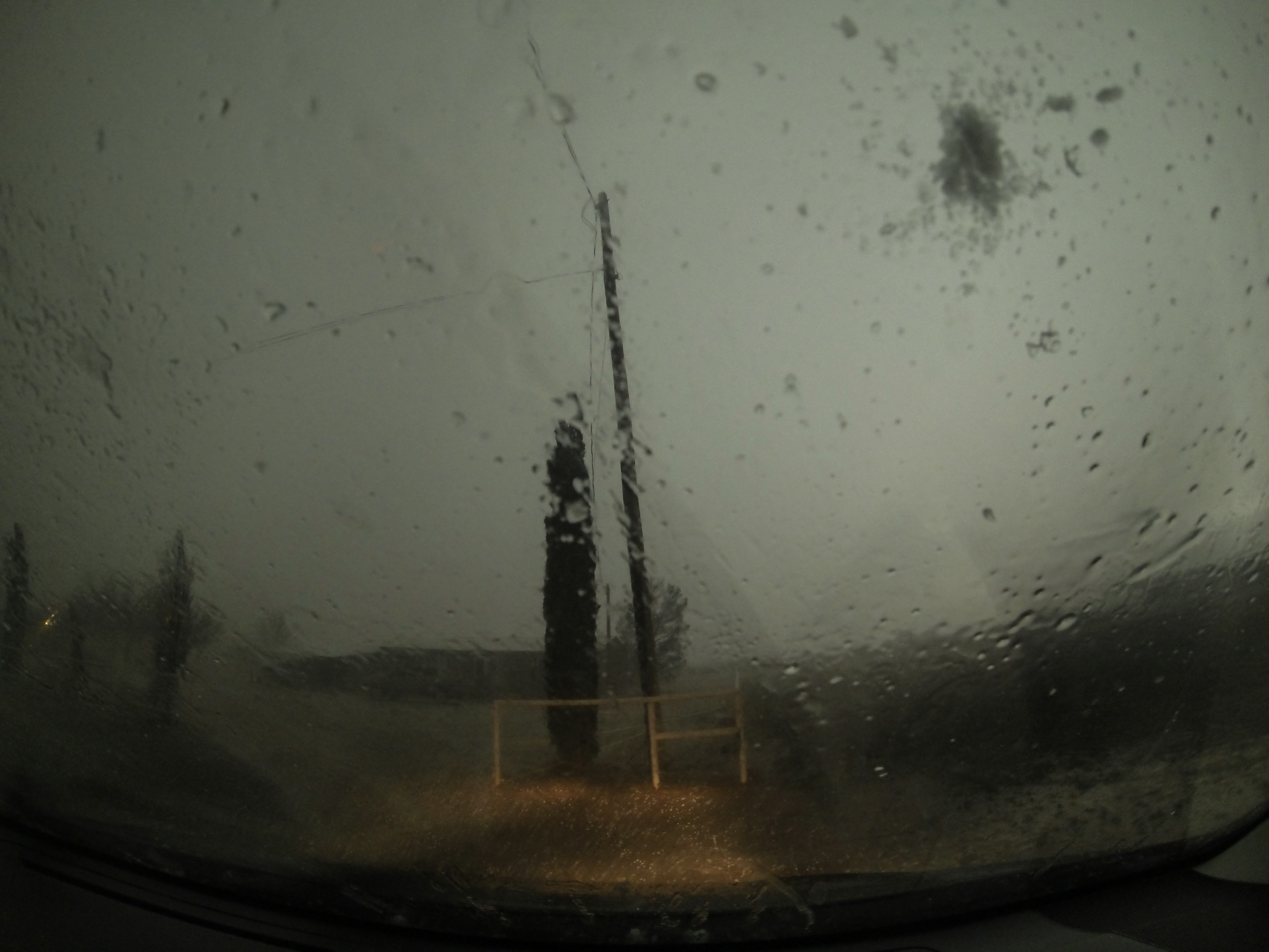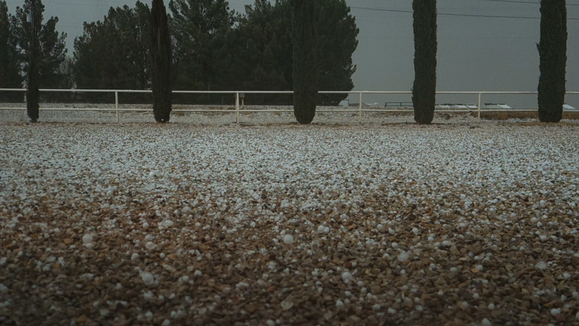 But almost as soon as we caught this nubby little funnel, it passed ahead of us and into the rain. Nickel hail soon followed, so we backtracked east towards Malaga. To our south, flanking line towers appeared to be consolidating into another base, but without better radar coverage I didn't have much situational awareness. At Hwy 285 we had a coin-flip choice: new base south or existing rotation north. Much to my hindsight chagrin, we chose north -- plunging further into a strengthening hail core hoping to catch another view of the funnel near Loving. On the outskirts of town, hail got large enough (ping pong balls) that I temporarily sought shelter under a random home's carport before continuing north. Along the highway, several inches of hail accumulated and a few cars had their back windows knocked out.