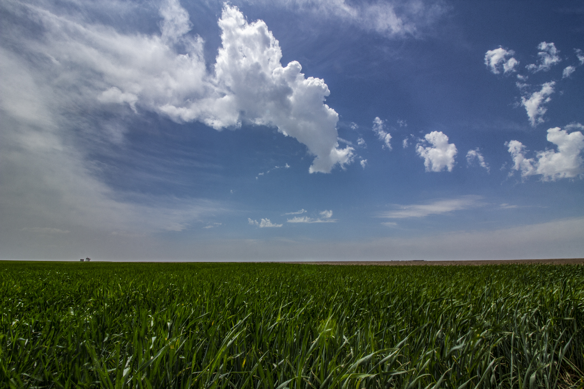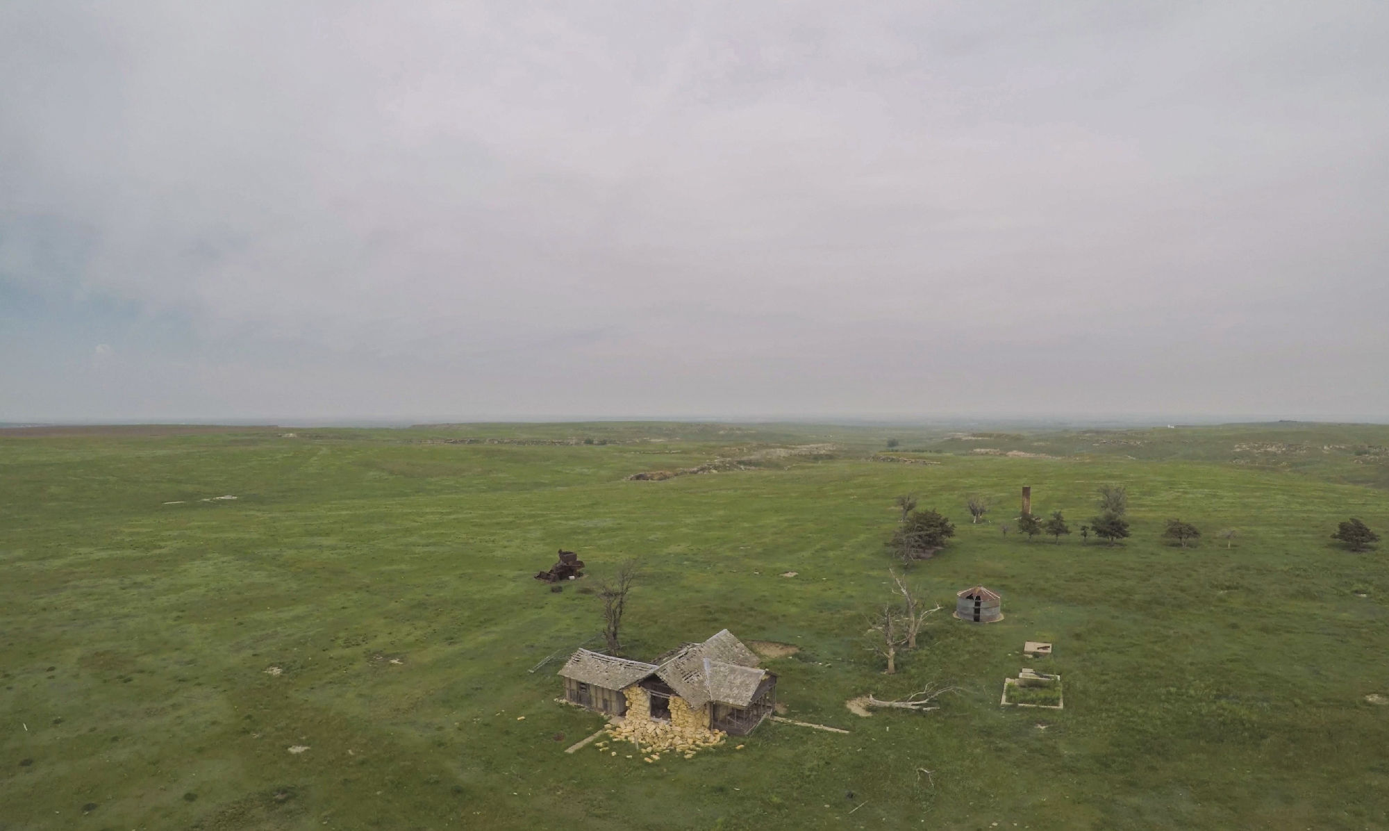 It might seem weird that chasers often sing the praises of morning fog. But it's true; many outstanding tornado days have started with dense early fog. This low cloud layer has a tendency to prevent temperatures from getting too hot, thus forestalling T/Td spread from getting too wide, thus keeping storm bases from growing too high, thus making tornadoes more likely to form. Obvious right? Well, I was certainly enthusiastic as we crossed north of Scott City and into some tasty, moist fog. Muggy air streamed NNW towards our target as we stopped occasionally between Scott City and Oakley to exercise some B-roll drone flights and slide rail lapses.